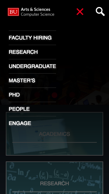 Website project management and development for Boston University Computer Science Department. Built on BU in house WP configuration. Complete redesign and development of CS website to include staff profiles, course info and featured articles.